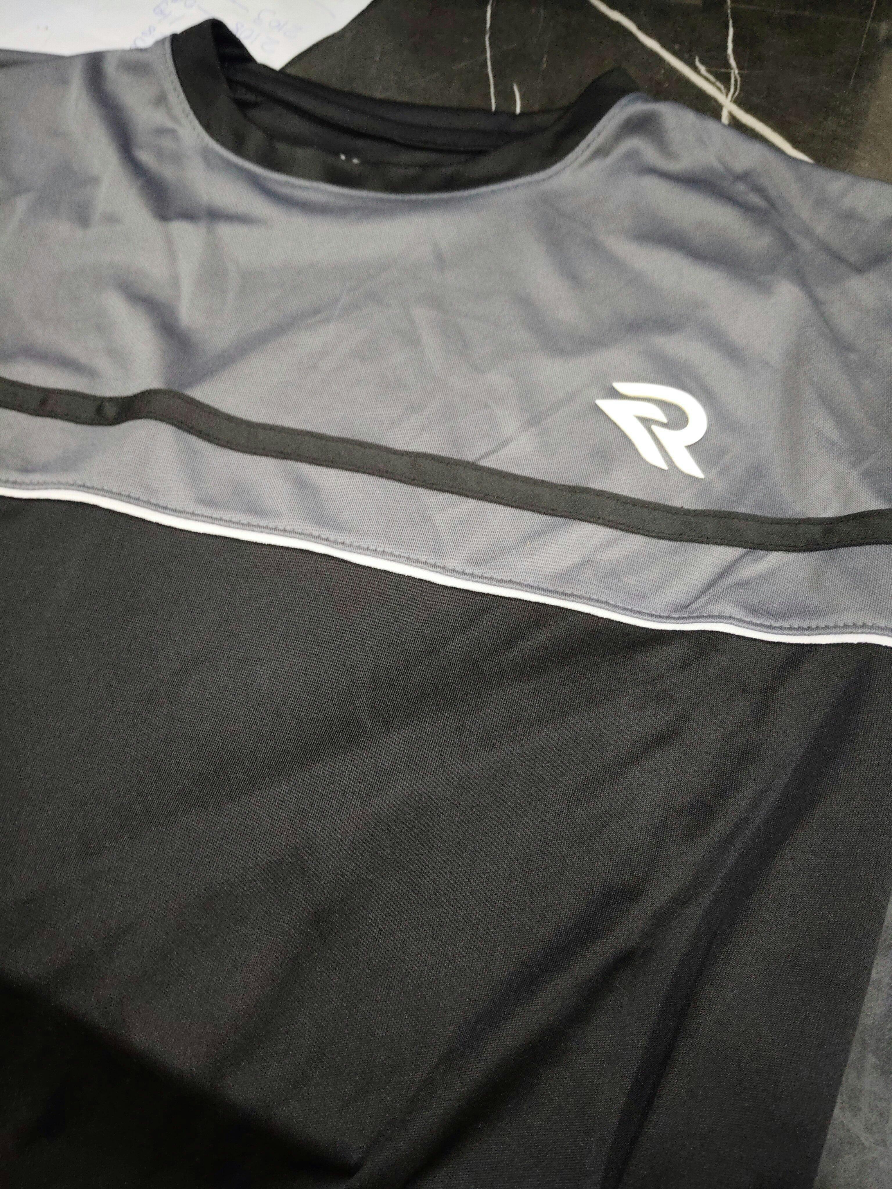 Black & Gray Summer Tracksuit Shirt – Half Sleeve | Breathable Activewear Top