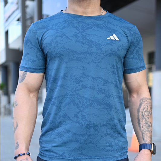 (Shirt Only) Rexa Steel Blue Mesh Active Shirt β Lycra 4-Way Stretch | Breathable Performance Fit